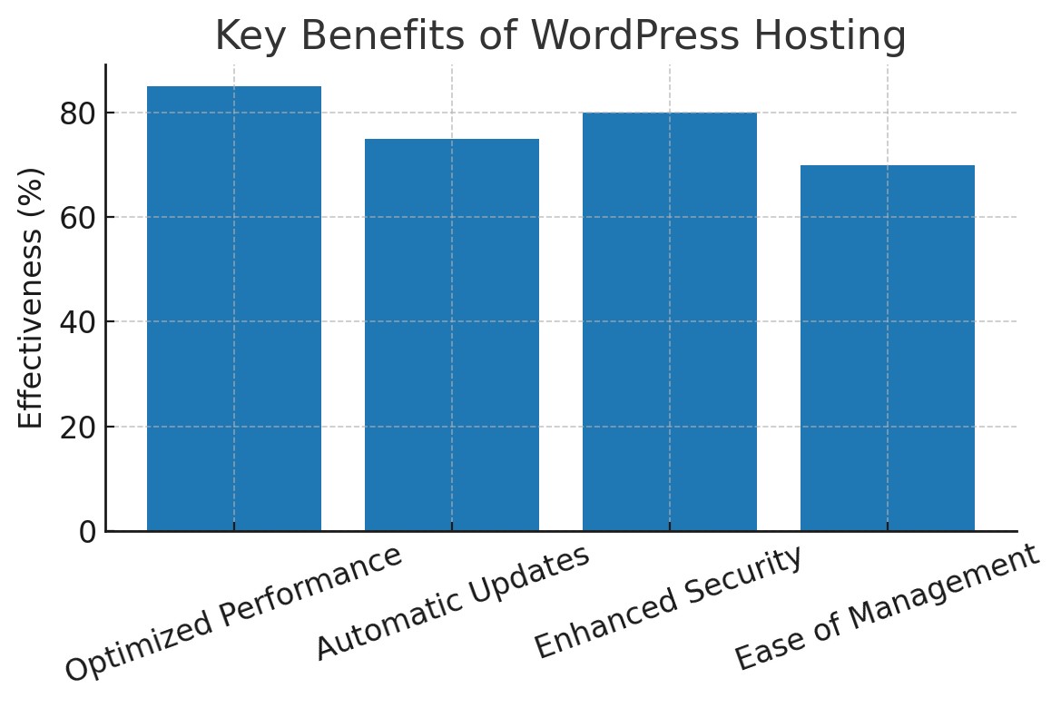 hosting offers specialized features and optimizations that enhance your website’s performance. These include faster loading speeds, automatic updates, easy-to-use control panels, and enhanced security, all of which make it easier for you to manage your website without worrying about technical details.