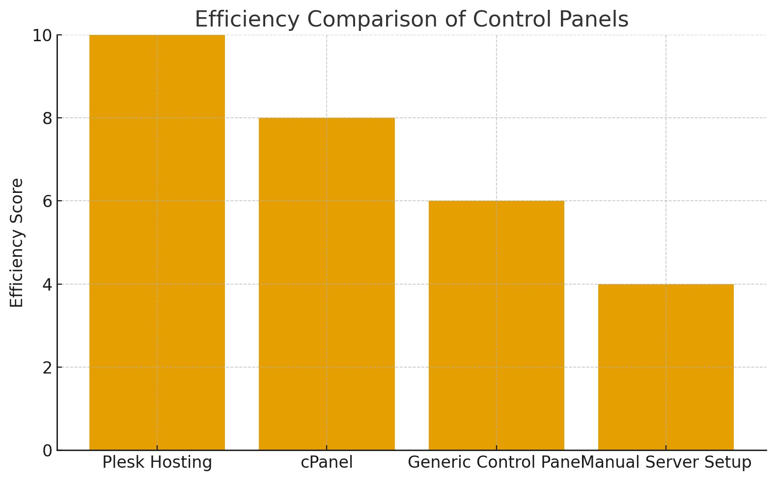 - Plesk scores the highest (10/10) because it offers a modern interface, strong automation, and efficient multi-site control.